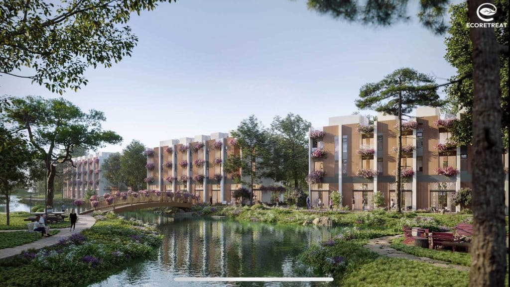 Ecopark Long An qui mô lên đến 220 ha được ví như một “viên ngọc quý” mới nổi bật giữa thị trường bất động sản sôi động của khu vực Bến Lức, Long An. Eco Retreat mang đậm dấu ấn là bản thiết kế rừng trị liệu – Rừng Retreat với 80% được tác động retreat từ thiên nhiên, 20% là các liệu pháp retreat chủ động